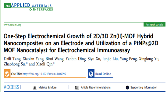 该研究探索了以Zn2+为阳离子源、血红素(Hemin)/均苯三酸(H3BTC)为有机配体的2D MOFs和2D/3D MOFs 复合材料的一步电化学合成方法,并将其应用于电化学免疫分析中。这项工作不仅为多功能化MOFs的合成提供了一种新的策略,也为电化学传感领域提供了新的途径。