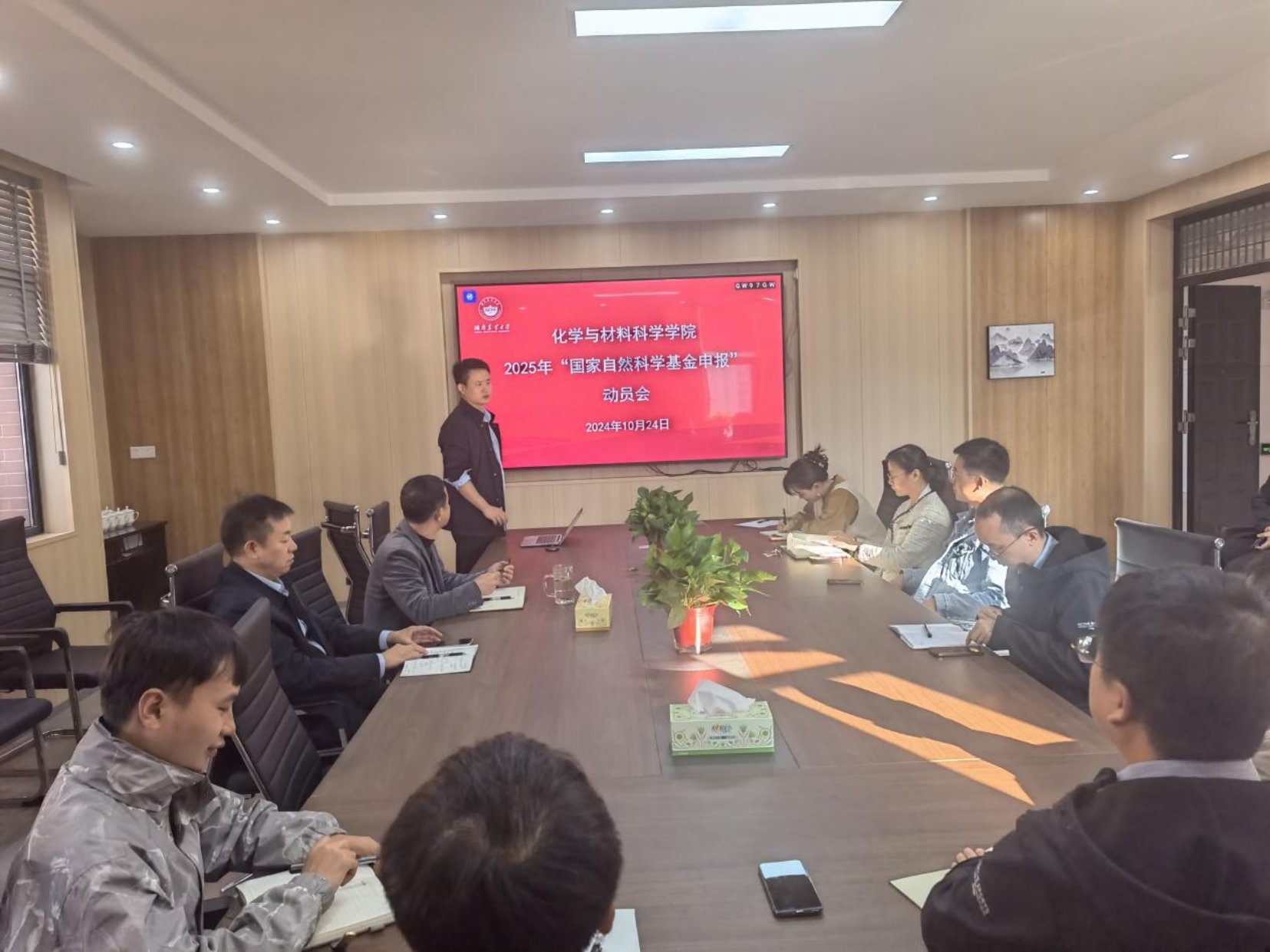 2024年10月24日下午,化学与材料科学学院在15教530会议室召开2025年度国家自然科学基金项目申报工作动员会,院长喻鹏、院党委书记汤帮耀、副院长彭昌及学院青年博士教师参加会议。会议由学院副院长彭昌主持。