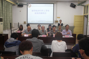 为加强学院领导和同学们的沟通交流,介绍近期学院的工作计划和安排,解决同学们学习生活上遇到的各种难题。5月16日晚7:30,理学院于三教305召开2013年度首次院领导接待日活动,学院主要领导、各系负责人、学工组老师出席本次会议。会议伊始,周文新院长对我院近期来的发展状况作了简单介绍,对一些重点工作作了详细的阐述,也希望同学们能够更加积极主动的关注和了解学院动态。提问环节中,学院各分管院领导认真听取了同学们关于专业课学习、试验课程安排、考研方向、就业前景等方面的提问,并详细的作出了解答。最后,刘庆华副书记对此次接待日活动作了总结,肯定同学们积极性的同时,也表示学院会更加贴近学生的学习和生活,拿出一个切实可行的方案来解决同学们遇到的各种难题。 (理学院学工组 杨盛强 阮思纯)