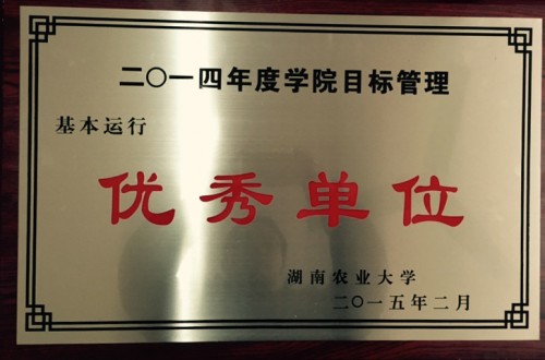 在2014年度学校目标管理考核评比中,我院以目标管理考核基本运行指标第二名的成绩,被评为优秀单位,并被学校奖励3.94万元。这是我院继去年后再获此荣誉。