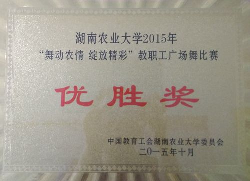 湖南农业大学2015年“舞动农情 绽放精彩”教职工广场舞比赛优胜奖