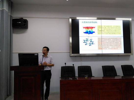报告分别由理学院喻鹏副教授、吴雄伟副教授主持,学院师生共140余人参加了本次报告。张熊研究员首先就石墨烯的国内外发展现状和研究进展进行了介绍,随后延伸至超级电容器的制备及应用,并以“北京路灯升级改造工程”和“鸟巢国家体育馆”为例,向2017级同学们介绍了石墨烯在照明设备上的应用,引起了同学们强烈的兴趣。紧接着,朱玉松副教授就凝胶聚合物电解质(GPE)的研究进展向与会师生进行了系统的讲解,阐述了凝胶聚合物电解质具有液体和固体电解质双重优点的机理,并对GPE的应用前景进行了介绍。
