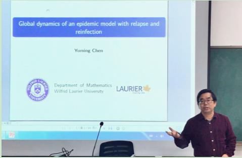 (理学院 雷雨亮)10月19日,加拿大罗瑞尔大学陈玉明教授应应湖南农业大学科技处、研究生院和理学院的邀请,面向全院师生作了题为《Global Dynamics of an Epidemic Model with Relapse and Reinfection》的学术报告。理学院李小平教授主持讲座,信科与统计系全体教师、生物数学硕士点全体硕士生、部分本科生聆听了陈玉明教授的精彩报告。