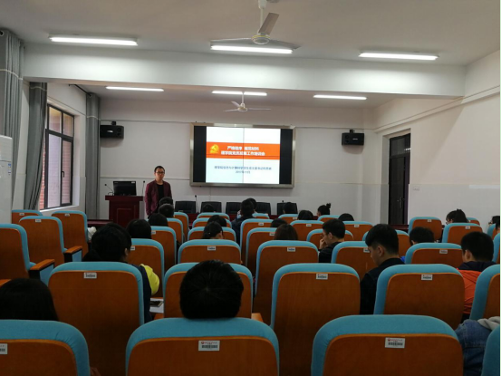 会议伊始,何恩祺老师阐述了参加党员培训的重要意义。希望每一位与会同学认真学习,理清党员发展程序和内在逻辑;在日常的学习和工作中,时刻牢记党员的身份和党员的义务,立足本职,发挥好先锋模范带头作用。随后,何恩祺老师对党员发展工作的基本程序、材料目录和材料填写说明做了详尽的说明,并指出了在填写材料时容易出现的问题,内容详实,认真严谨。最后,何恩祺老师强调,与会同学应深入学习十九大报告精神,树牢“四个意识”,坚定“自个自信”,将自身价值融入到伟大祖国的建设中去。