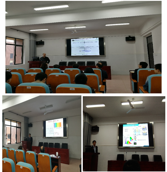 11月28日下午,应我校理学院院长周文新教授、周智副教授的邀请。中山大学王静教授、华南农业大学雷炳富教授、中国科学院宁波材料所刘永福副研究员莅临我校讲学,在15教624室分别做了题为“面向半导体照明与生物成像微纳米发光材料与应用研究”、“光学农业-农用发光材料的设计及应用”和“LED照明用稀土发光材料研究”的学术报告。理学院副院长廖桂平主持学术报告会,理学院党委书记、副院长邓白平、周智副教授、相关老师以及研究生、本科生近100人听取了此次报告。