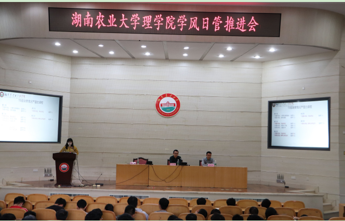 (理学院 马文秀)为加强理学院学风以及园区精神文明建设,进一步提升现有的学习风气以及园区环境,4月13日中午,理学院于大成厅举行了学风日管推进会。出席本次会议的有学工组何恩祺老师、马文秀老师、蒋艳成老师。理学院团委学生会所有学生干部,15-17级各班班委、寝室长等300余名学生代表参加本次会议。