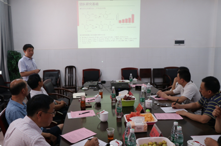 会议首先由生物质源功能材料团队带头人喻鹏博士做主题报告。报告展示了生物质源功能材料团队的基本情况,团队自2016年7月成立以来,围绕农业剩余物材料化高值利用,正在开展以下四个方面的研究工作:化工中间体、动物营养中间体和兽药制剂的制备技术与开发;生物质源矿物加工材料的制备技术及其应用;生物质源材料在新能源领域的开发应用;农业剩余物的板材化利用研究。两年时间里,团队成员获批并主持国家自科基金青年项目1项、省自科基金项目2项;在Nanoscale、 Journal of alloys and compounds等国际著名期刊发表SCI收录论文9篇;现与3家企业正在开展深入合作。最后,喻鹏博士对团队未来五年的工作进行了展望。