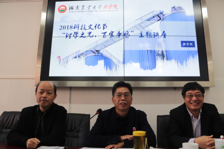 (理学院 王志国)2018年11月24日,应我校理学院院长周文新教授和喻鹏副教授邀请,桂林电子科技大学材料科学与工程学院院长孙立贤教授、华南理工大学国家“优青”入选者胡仁宗教授和国家“青千”入选者刘军教授来我校参加“理学之光,百家争鸣”主题讲座并作学术报告。本次讲座由校党委副书记卢向阳主持,理学院周文新院长、刘灿明老师、曾盔老师等近百名师生参加。
