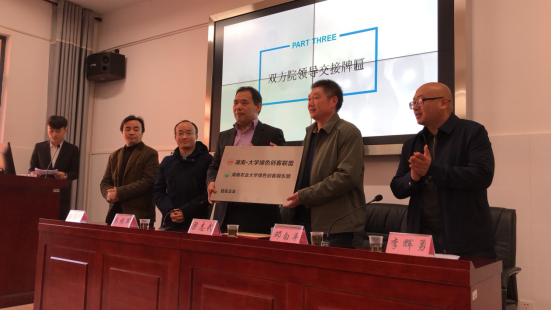 湖南农业大学理学院党委邓白平书记与湖南大学化学化工学院梁志武教授交接为创客授牌