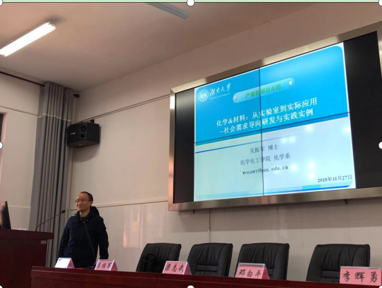 湖南大学化学化工学院吴振军教授为创客成员讲解从实验室到生产实践的实例