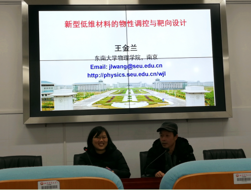 (理学院 汤剑锋)12月10日下午,东南大学王金兰教授在第十五教学楼624室作了题为“新型低维材料的物性调控与靶向设计”的学术报告。报告会由院长周文新主持,邓白平书记、廖桂平副院长、李辉勇副院长等学院领导出席,学院各团队负责人、部分青年教师、研究生和本科生代表参加。