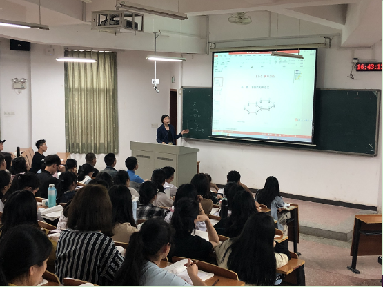 (理学院 张璐)4月18日下午4:30,理学院在十教北202教室举行了一次《有机化学》示范课教研活动,示范课由蒋红梅老师主讲,学院周文新院长、邓白平书记、李辉勇副院长、教务处许春英科长和学院30余名教师参加了听课。