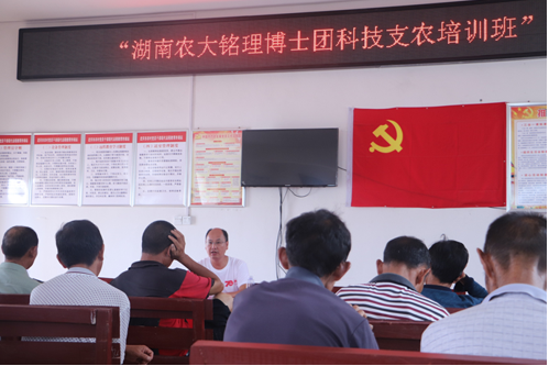 (理学院 刘明霞 戴佳妮)为深入学习贯彻习近平新时代中国特色社会主义思想,落实《中共中央国务院关于实施乡村振兴的战略的意见》,7月21至24日湖南农业大学理学院“三下乡”社会实践“博士团”来到湖南省武冈市稠树塘镇雅槎村,为当地送去一场“科技及时雨”,助力当地“乡村振兴”。