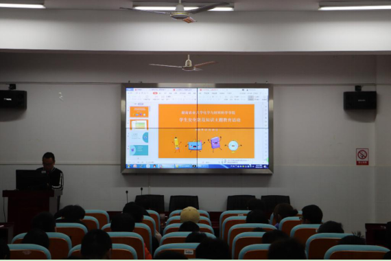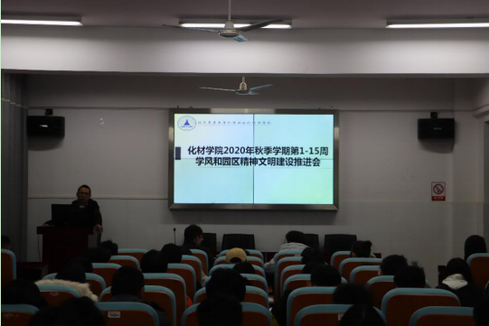 (化材学院 林程智、王成欢)为进一步加强学风和园区精神文明建设,增强学生安全防范意识。化学与材料科学学院12月10日晚在第十五教学楼624报告厅举行了化学与材料科学学院学风和园区精神文明建设推进会暨安全防范知识主题教育活动。学工组全体老师、2017至2020级各班班长、学习委员和全体寝室长参加活动。