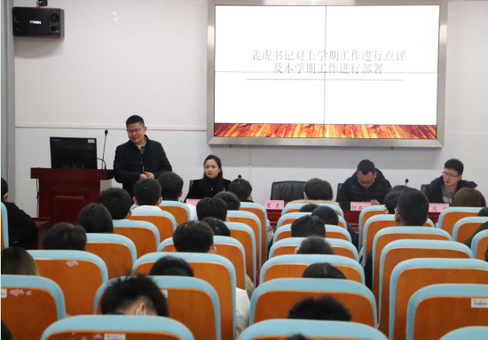 会上,学院党委副书记裴虎对本学期学生工作作了重要部署。裴书记指出开局就是决胜局,从安全要有保底、做事要有效率、执行要坚决、重点要一致等七个方面对团学工作做出总体要求。其次他认为作为学生干部要善于利用工具和讲究方式方法,要有执行力,要以身作则,并鼓励全体团委学生会齐心协力共同建设更好的化材学院。