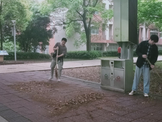 这天早上,凌晨六点,天蒙蒙亮,我院24名志愿者来到芷兰宿舍大门集合,今天他们有一个重要的任务,跟着环卫工人一起打扫校园,亲身体验环卫工人在打扫、收集垃圾等工作时付出的辛勤汗水。在活动现场,大家手拿着扫帚,弯着腰,把马路上的垃圾、树叶扫成一堆,经过志愿者的共同努力,原本铺满树叶的马路变得干净宽敞。在这一个多小时的劳动下,有不少志愿者感到腰酸背痛,但从他们眼里看到更多的是对环卫工人这份工作的理解与尊重。