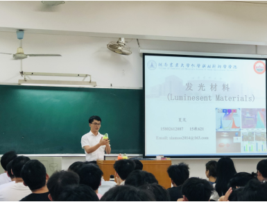 夏老师以发光材料为专题,以五种商用荧光粉材料、LED发光材料和激光照明材料为切入点,通过比较不同发光材料之间的异同,引入本节教学内容。通过课堂演示荧光粉材料、白光LED器件、激光照明材料的发光现象,深入浅出的讲授了发光材料的基本概念、分类方法和发光原理,为同学们上了一堂精彩的公开课。课后,针对夏茂老师课堂教学优点及需要改进的地方,大家进行了交流。