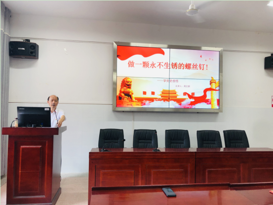 周文新院长以“做一颗永不生锈的螺丝钉”为主题,围绕党史学习的时代背景、学习党史的感悟开展党课。在回顾近代中国的曲折复兴历史,从鸦片战争时期到现代,让党员们深刻认识到了红色政权来之不易、新中国来之不易、中国特色社会主义来之不易。以历史中蕴藏着的初心、真理、规律和精神阐述了开展党史学习教育的原因。雷锋的“螺丝钉精神”,是自觉地把个人融入党和人民的事业之中去,个人服从整体,服从组织,忠于职守,兢兢业业,干一行爱一行钻一行,全心全意为人民服务的精神,我们要坚守螺丝钉的铮铮“螺纹”,辩证的看待螺丝钉的“独”与“众”,做一颗经常保养和清洗的螺丝钉。
