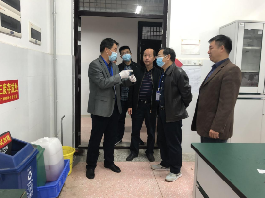 检查组重点检查了化学实验中心的三废暂存点、危化品存储室及各类实验室,查看了三废收集登记表、标识,危化品出入库管理落实情况,对有安全隐患的地方进行了现场教育并提出了整改要求,要求每一位老师都要高度重视安全工作,认真执行落实每一项安全规章制度,从而更好地保障广大师生的生命财产安全。