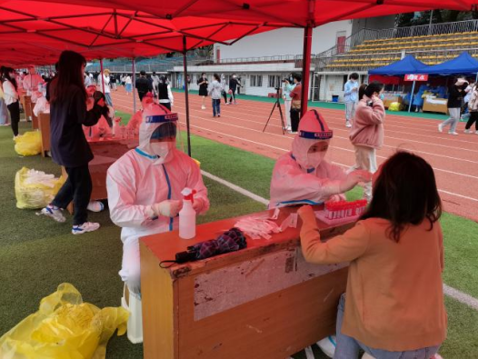 经过培训,教师志愿者们穿上防护服核验身份证、有序进行核酸检测工作。本次核酸检测时间安排紧,在全校师生的共同努力下,半天就完成了核酸检测采样工作,从而确保了下午的课程不受影响。疫情就是命令,防控就是责任。作为党员教师,应敢当教师先锋,做好学生表率。我院志愿者教师们在此次活动中彰显出化材学院教师的精神风貌,为学校的防疫工作和全校师生的身体健康提供了有力支持。