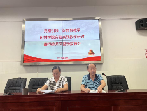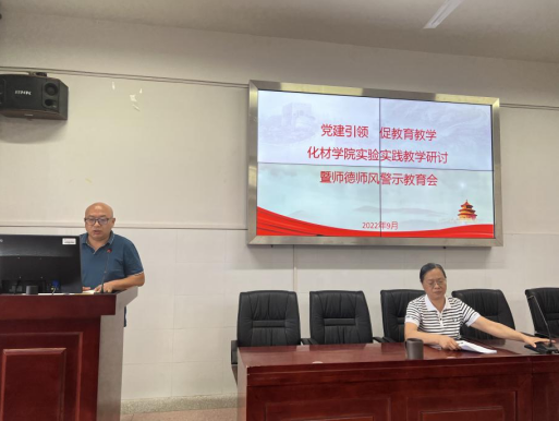 (化材学院 罗雅岚)为进一步加强实验实践教学过程管理,提升实验实践教学质量,利用身边的案例开展警示教育,提升广大教师职业素养,9月29日下午,化材学院在15教624会议室召开“党建引领 促教育教学 化材学院实验实践教学研讨暨师德师风警示教育会”。会议由党委书记胡小元主持,学院全体教职工参加。