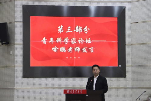 化学实验教学中心主任喻鹏老师发言时介绍了我院近年的学科发展情况,尤其是与农业相关学科之间的交流融合,拓宽了新生的学术视野,展现了一丝不苟的科研态度。他还说:“各位新生要‘聚集专业汇力量,扎实基础力实践’,牢记袁隆平院士的八字箴言,‘知识、汗水、灵感、机遇’,始终秉承脚踏实地把论文写在祖国大地上的理念,建立良好的科研习惯,脚踏实地做好科学研究,从而激发自己对于化学专业的学习热情,培养自己的专业情怀,从而增强对于专业学习的积极性。”