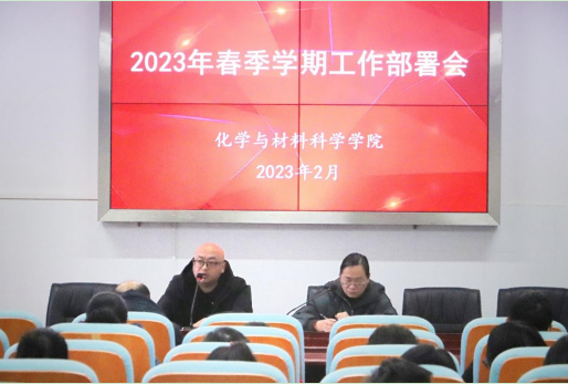 (化材学院 杨思国 王山)2月16日下午,化学与材料科学学院在第十五教学楼624召开2023年春季学期工作部署会,总结回顾2022年工作,推动新学期各项工作有序开展。学院全体教职工参加会议。会议由党委书记胡小元主持。
