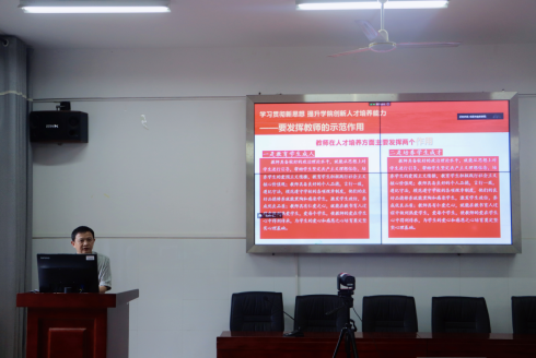 汤帮耀围绕习近平新时代中国特色社会主义思想的理论框架,就如何奋力谱写创新人才培养新篇章授课。他表示,要深刻领会“两个坚持”,牢记“六个坚持”的方法论,切实把习近平新时代中国特色社会主义思想贯彻落实到党和国家工作的各方面和全过程。他强调,要学习贯彻新思想,提升学院创新人才培养能力,全院教职工要忠于党的教育事业,把党的创新理论运用到贯彻落实党的二十大提出的重大战略部署中去,牢记立德树人根本任务的要求,营造教学相长的人才培养氛围。