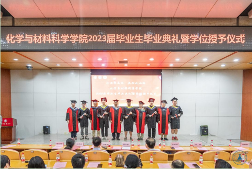 (化材学院 庄淑贤 杨思国)6月19日上午,化学与材料科学学院在八教学海厅举行2023届学生毕业典礼暨学位授予仪式。学院院领导、院学术委员会成员、毕业班班主任、教师代表及2023届本科、硕士毕业生参加。