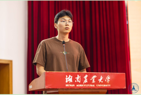 老生代表陈博威在发言中与同学们分享了学习经验,鼓励同学们在求学之路中要求得磨练、求得知识,要克服怠惰、励志笃行,要勇于尝试、全力以赴,要紧抓机遇、突破自我。他表示,作为湘农学子,既要仰望星空,更要脚踏实地,在践行“请党放心、强农有我”中厚植爱农情怀,练就兴农本领。
