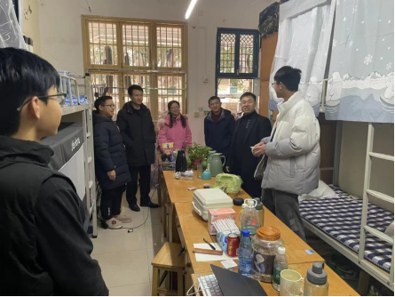 (化材学院 周俊海 李仁啟)为进一步了解学生报到情况以及假期动态,2月25日下午,化学与材料科学学院党委书记汤帮耀、院长喻鹏等学院领导、各年级班主任及辅导员老师深入宿舍看望学生。