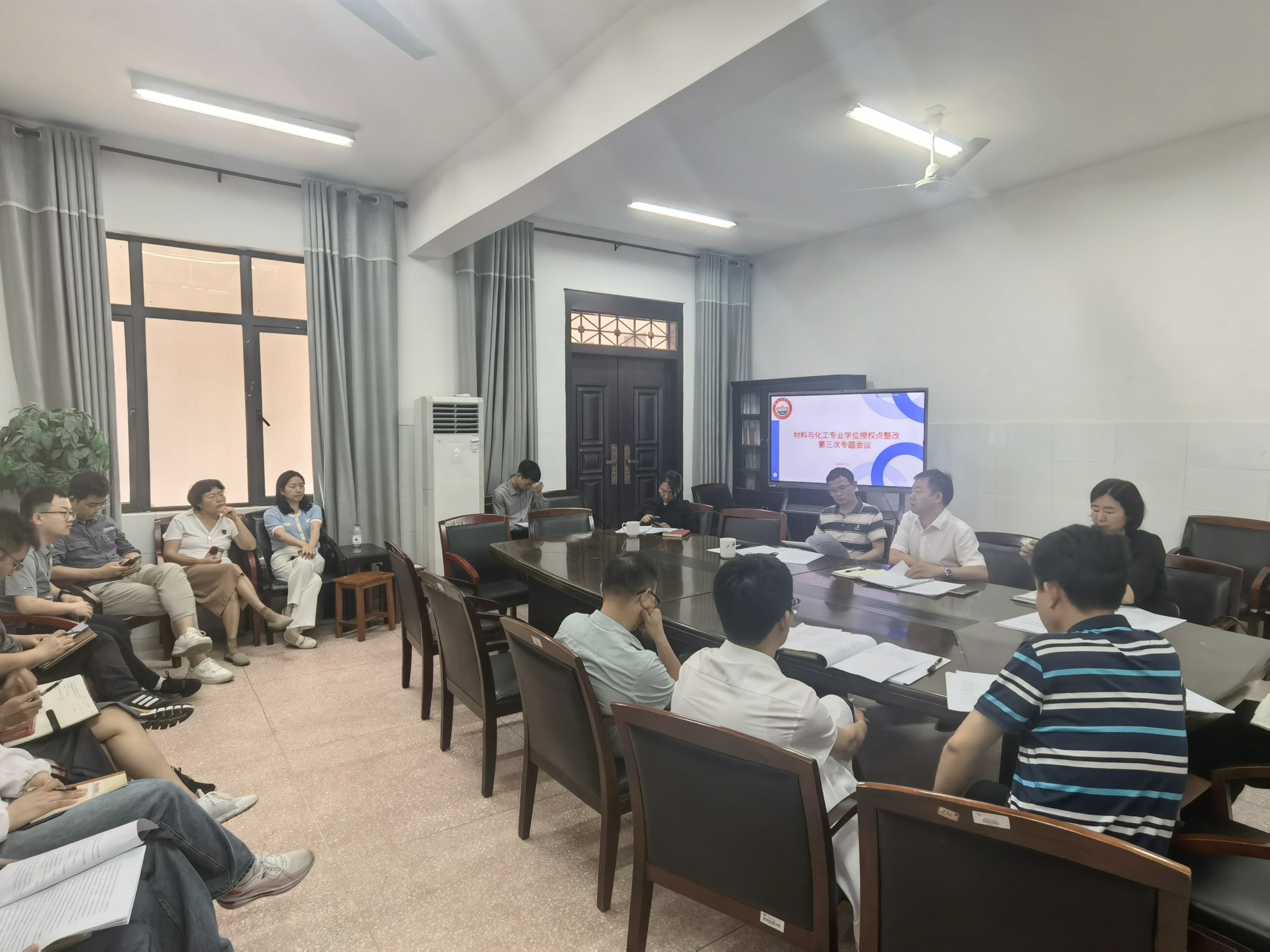 2024年5月23日下午,化学与材料科学学院在第十五教学楼528会议室召开材料与化工学位授权点第三次整改建设研讨会。化学与材料科学学院全体班子成员,材料与化工学位授权点全体导师参加了会议。会议主题(1)为整改任务分工与实施,按学位点建设工作内容学位点组建10个工作小组,学院书记、院长挂帅担任小组负责人,实行组长负责制,每个小组制定严格整改工作清单、目标清单与时间清单,以保证整改举措有效推进与实施;会议议题(2)为材料与化工专业硕士授权点的建设思路与重点研讨。