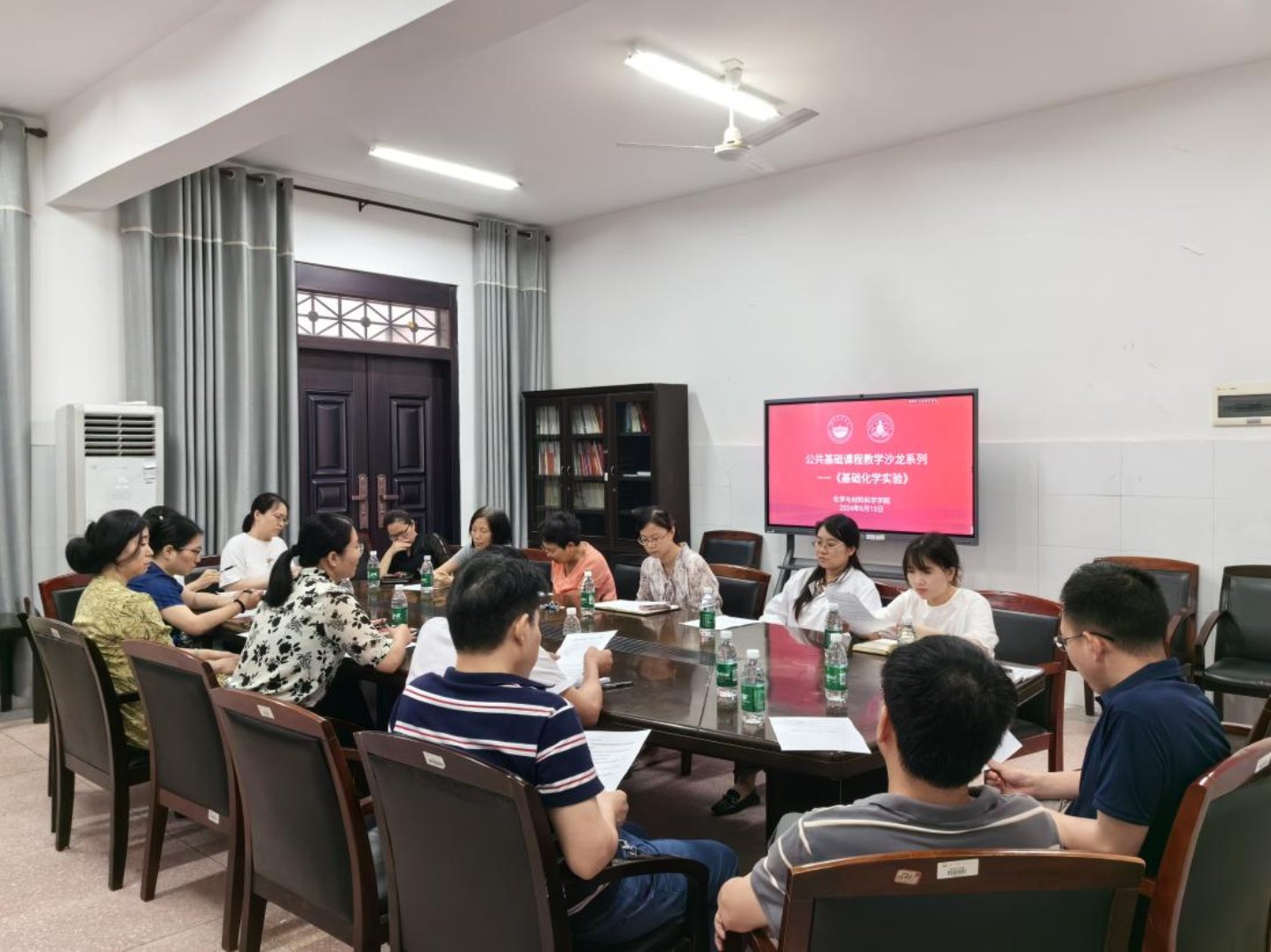 (化材学院 罗雅岚)为提升公共基础课《基础化学实验》的运行效率和教学效果,6月13日下午,化学与材料科学学院举行了《基础化学实验》课程教学沙龙活动,活动由副院长刘辉主持,学院教学督导代表熊远福老师、《基层化学实验》课程负责人蒋红梅老师和罗景老师、实验中心主任覃晓丽老师、部分任课教师以及实验员代表参加。