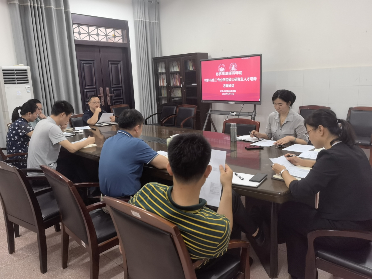 6月17日下午,化学与材料科学学院在第十五教学楼528会议室召开了材料与化工专业学位硕士研究生人才培养方案论证会。学院院长喻鹏,副院长刘辉、彭昌,院学术委员会成员,材料与化工学位授权点导师代表参加会议。