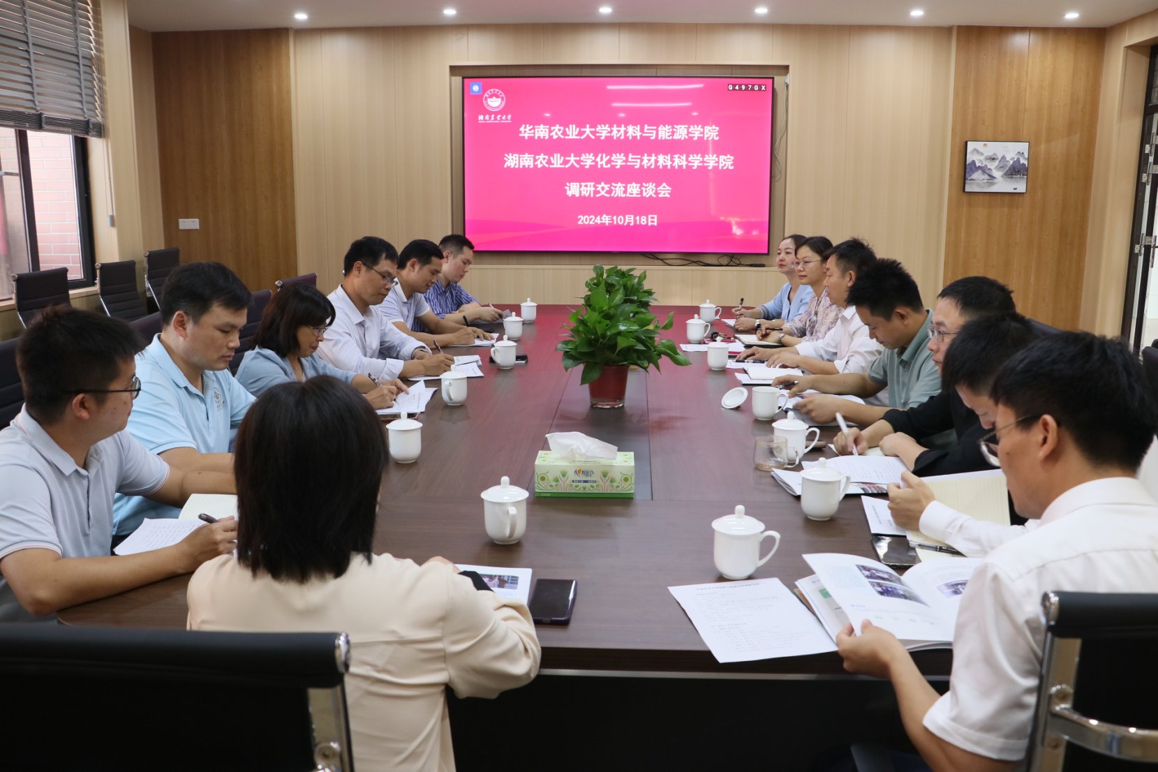 为加强学术交流与校际合作,共同推进化学和材料科学学科发展,10月18日,华南农业大学材料与能源学院院长雷炳富一行来到化材学院进行交流调研。调研会由化材学院院长喻鹏主持,学院分管科研副院长、学位点领衔人、基层教学组织负责人、大型仪器管理平台负责人及部分教师代表参加。