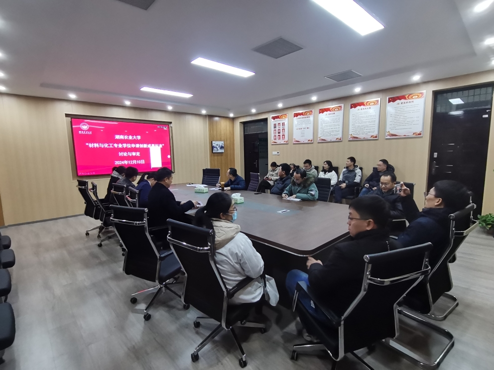 为进一步提高学位与研究生教育质量,进一步贯彻《中华人民共和国学位法》《湖南农业大学研究生申请学位创新成果标准规定》等文件精神,结合材料与化工专业学位培养实际, 12月10日下午,化学与材料科学学院在第十五教学楼530会议室召开了“材料与化工专业学位硕士申请学位创新成果标准”审定研讨会。材料与化工专业学位硕士全体导师参加了会议。