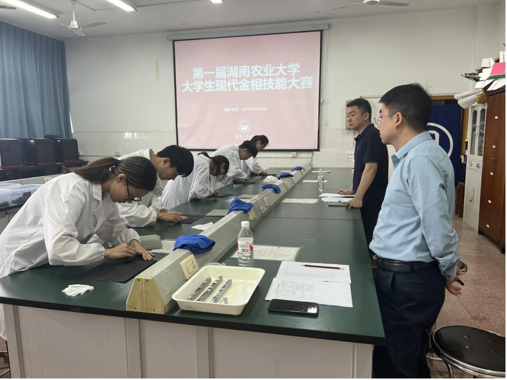 为选拔优秀人才备战“第一届湖南省大学生现代金相技能大赛”和“第十四届全国大学生金相技能大赛”,化学与材料科学学院和机电工程学院于2025年4月24日联合举办了“第一届湖南农业大学大学生现代金相技能大赛”,87名相关专业学生参赛。