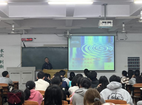 邓磊老师主讲《大学物理A》中的“机械振动与波动”这个章节的内容。邓磊老师教态自然,语言生动,讲解详细,多媒体课件制作精美,图文并茂,并通过引用生活实例深入讲解,使课堂氛围轻松愉悦。课后,针对邓磊老师课堂教学优点及需要改进的地方,大家进行了交流。
