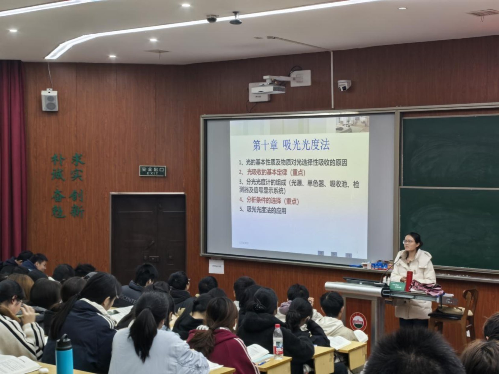 王佳佳本次讲授内容为《无机及分析化学A》中的“吸光光度法”。她授课语言生动,对章节内容与知识点阐述清晰,并借助多媒体手段将课程理念融入教学。课堂上,王佳佳注重师生双向互动,通过趣味提问、抢答等方式调动学生积极性,课堂反响热烈,实现了知识在交流中的有效传递。