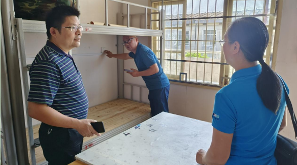 院领导一行先后到男生宿舍、女生宿舍,一间间实地检查了新生宿舍设施情况,针对不少寝室存在的桌椅松动、窗户不严、锁扣不牢等问题,一一记录,并上报后勤服务中心进行维修解决。对其宿舍卫生和楼道、房间、淋浴间等具体内务进行了要求,强调一定要打扫干净、彻底,不留一个死角。特别是淋浴间,务必要清理干净,洁白无瑕,给新生入校营造一个舒适的环境,感受到家的温馨。