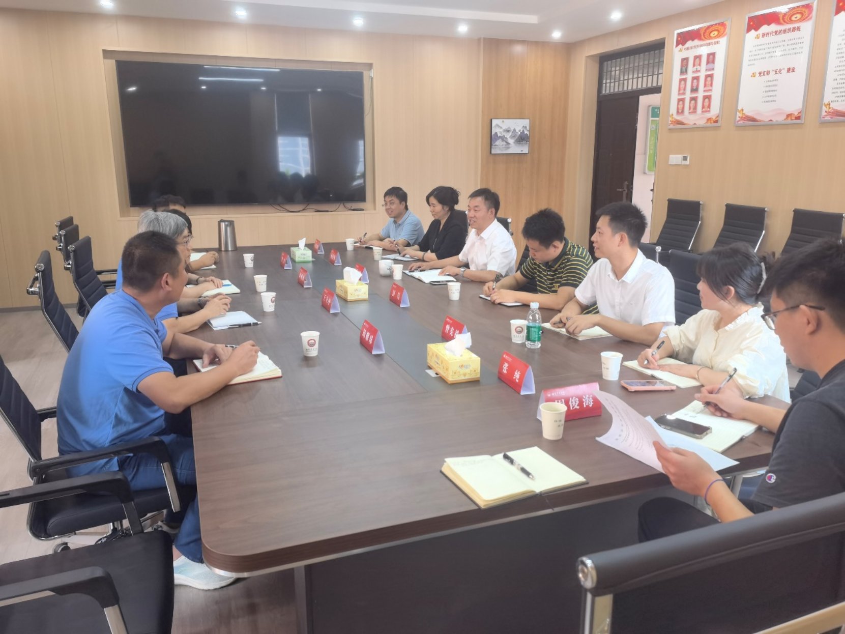 交流座谈会上,喻鹏代表学院向永杉锂业一行表示了热烈的欢迎,并详细介绍了学院的发展历程、建设情况以及产教融合和产学研合作的思路。王立中代表永杉锂业表达了对深化校企合作的强烈愿望。他表示,永杉锂业作为新能源材料行业的领军企业,一直致力于高品质锂盐的生产、研发及销售。希望通过与湖南农业大学的合作,借助学校在材料科学、应用化学等领域的人才培养及科研优势,就学生实习实践、专业硕士联合培养、科技攻关等方面开展深入合作,从而推动企业的技术创新和产业升级。